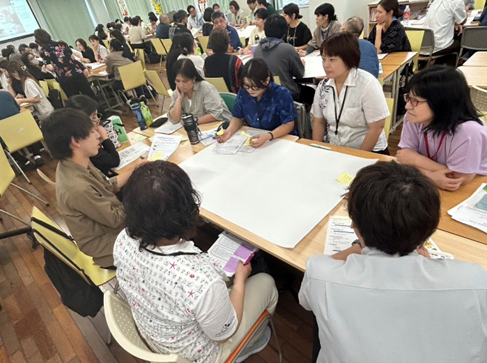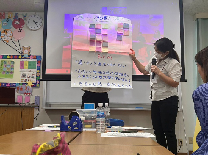 大庭学園グループの合同研修が行われました。前年度の行った研修の実践検証発表と、オーストラリア短期留学視察報告及びクループワーク「多様性の中での相互理解」世代間ギャップって悪いこと? ~違いから学ぶ対話セッションを行いました。20歳代~60歳代の職員がそれぞれ意見・想いを出し合い、とても有意義な研修になりました。