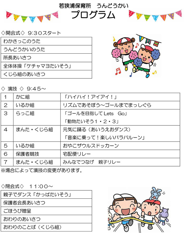 先日、無事運動会が行われました。プログラムの通りに写真を掲載しています。