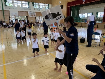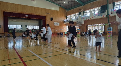 《 まんた組(3歳児)・くじら組(4歳児) : みんなでつなげ親子リレー 》