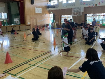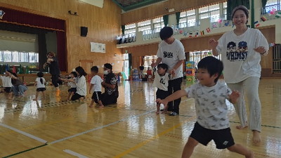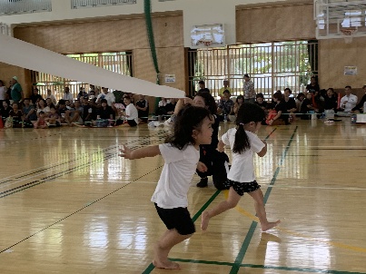 運動会では、走る・跳ぶ・踊るといった全身を使った活動を楽しみながら、園児や保護者、先生と一緒に盛り上がりました。