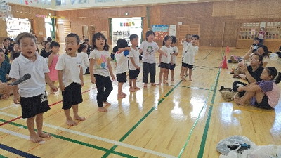 閉会式では、親子でダンス、保護者からのごほうび贈呈、くじら組から保護者へのお礼のあいさつをして運動会を終了しました。