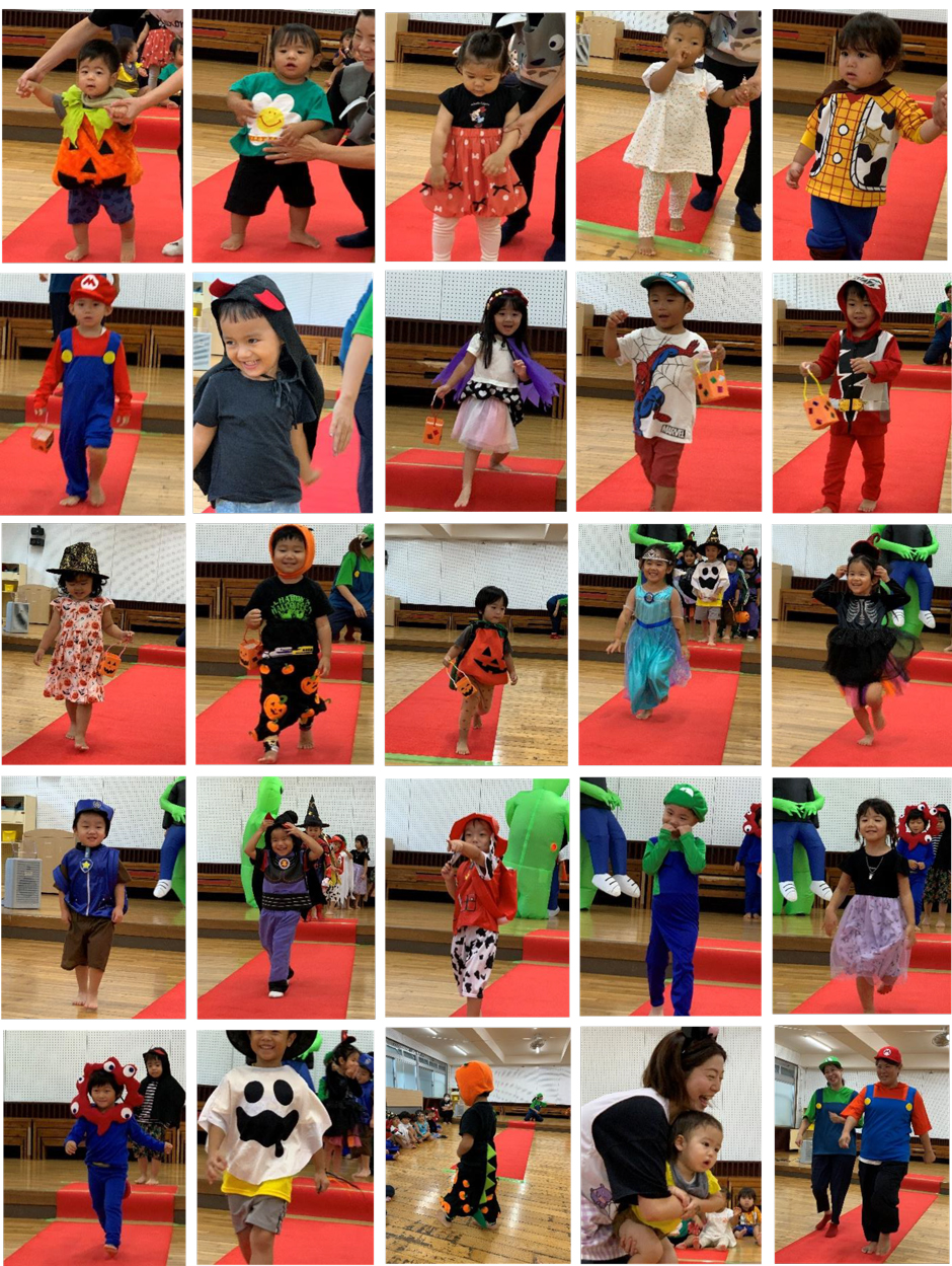 園児たちが、ハロウィン衣装で、レッドカーペットをウォーキングしました。