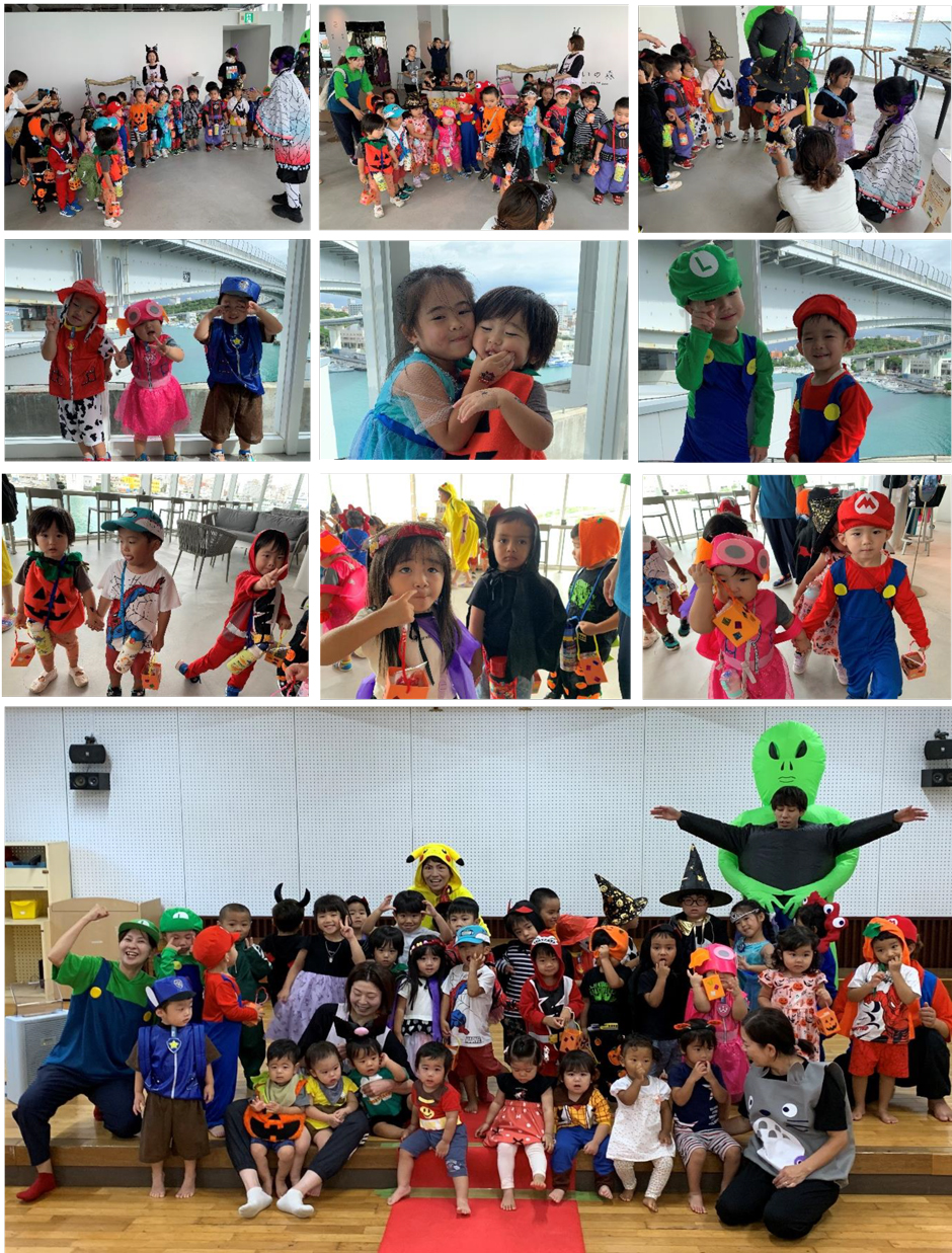 園児たちは、「トリックアトリート」と言ってお菓子をもらい嬉しそうでした。