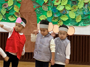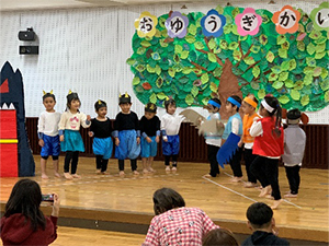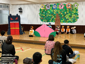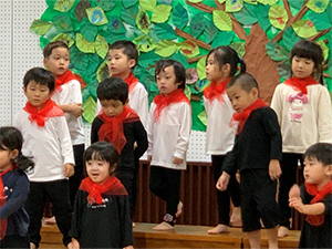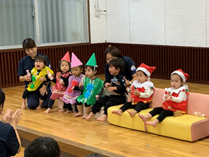令和7年12月20日(土)朝から雨で、あいにくの天気でしたが、大勢の保護者、家族の方に来ていただきました。今年は、本園のホールを会場として、身近でお子さんの元気あふれる演技を鑑賞でき、こども達の成長をより感じることができたと思います。